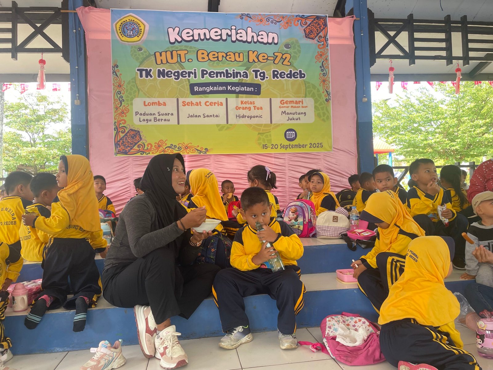 HALOBERAU – Taman Kanak-Kanak (TK) Negeri Pembina Tanjung Redeb turut memeriahkan Hari Ulang Tahun ke-72 Kabupaten Berau dan ke-215 Kota Tanjung Redeb dengan menggelar berbagai kegiatan bersama anak didiknya.