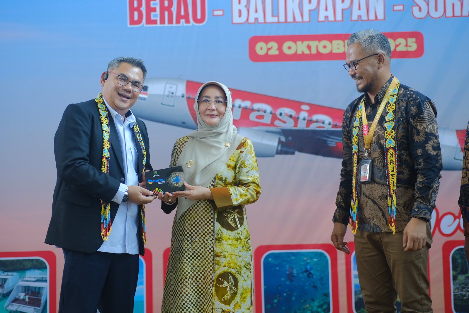 Kehadiran AirAsia disambut langsung oleh Bupati Berau, Sri Juniarsih Mas, bersama Kepala BLU UPBU Kelas I Kalimarau, Patah Atabri, jajaran Forkopimda, para kepala OPD, hingga perwakilan Kesultanan Sambaliung dan Gunung Tabur.
